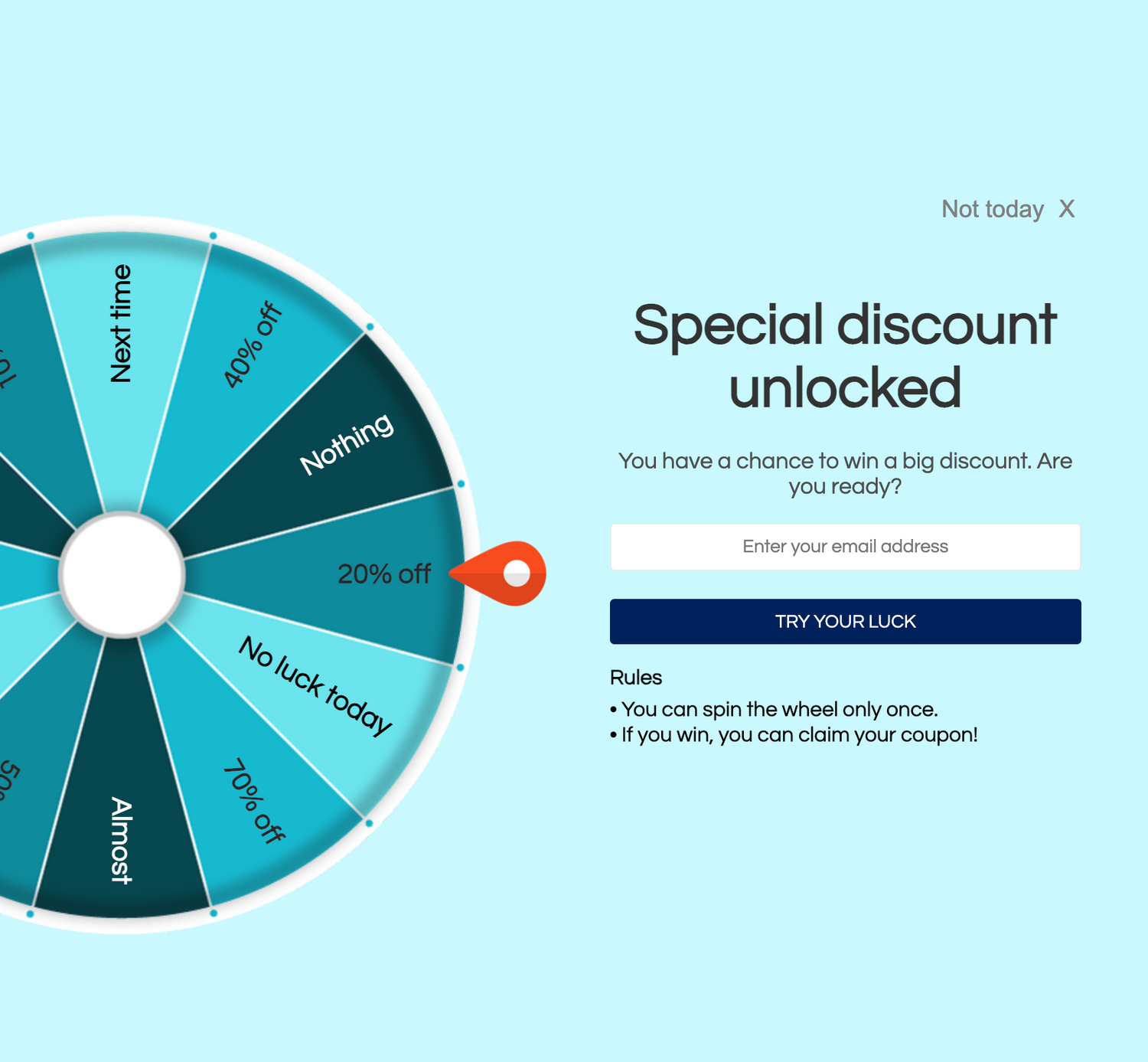Feeling lucky? 🤩 Enter your email, spin the wheel, and unlock exclusive discounts on your next order! The wheel randomly pops up while you shop—or click the present on the left to try your luck! 🎉